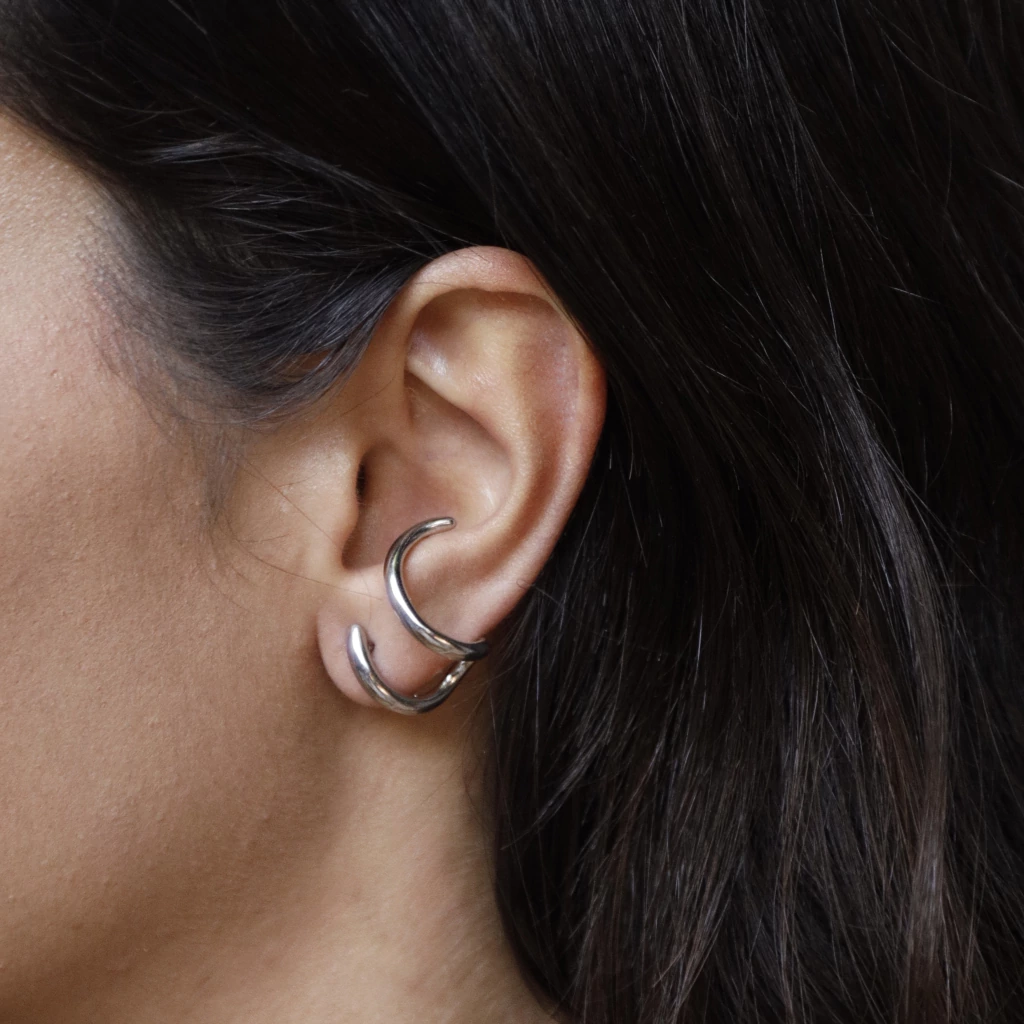 Brinco em formato orgânico que sugere movimento! Para quem sempre quis fazer um piercing mas não teve coragem e se incomoda com earcuff. Esse brinco é para você!