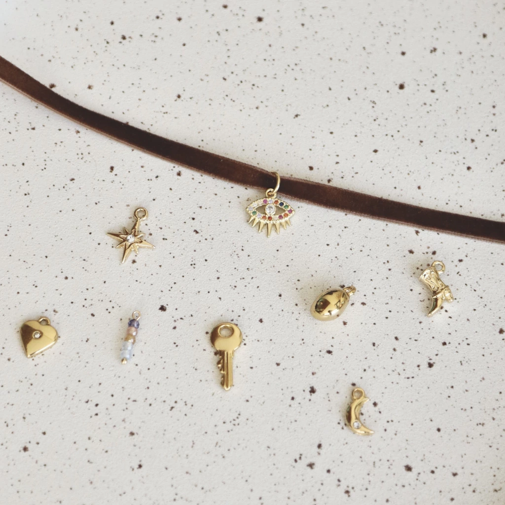 Feita de veludo marrom, você escolhe de 1 a 3 charms para personalizar e compor a sua vibe!