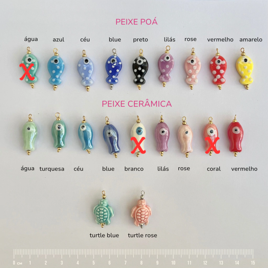2) Escolha os pingentes consultando as opções que estão na sequência das fotos do produto.