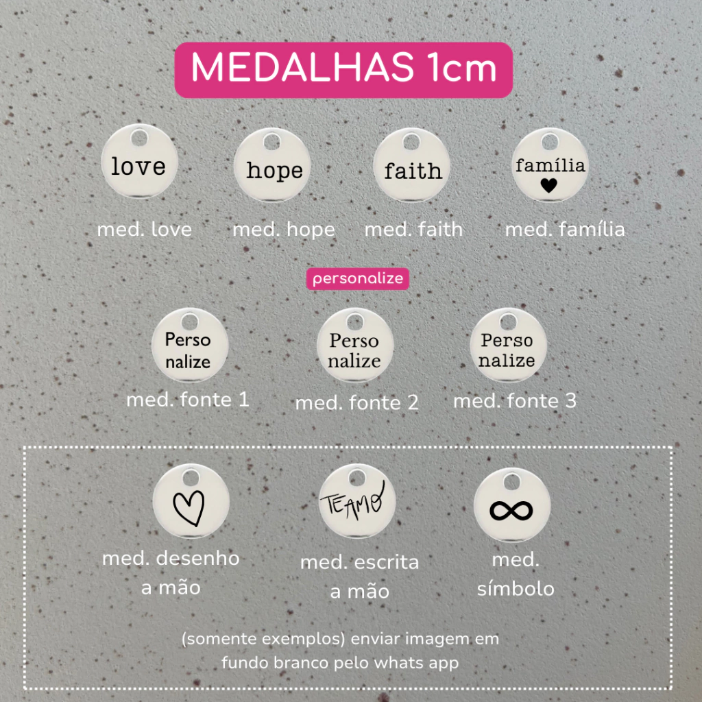 3) Escreva no campo de personalização os pingentes escolhidos na ordem que deseja.