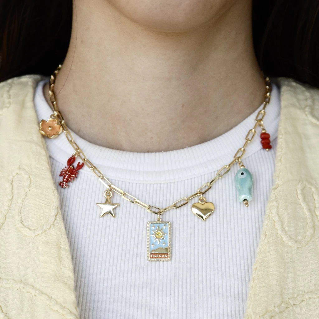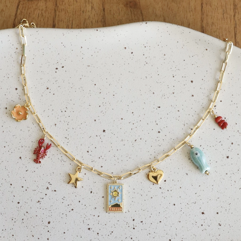 Colar de elos com vários charms lindos. Uma combinação que é a cara do verão!
