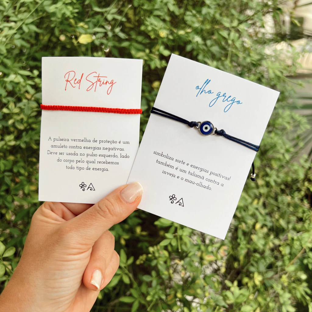 Nossa dupla de pulseiras Vermelha Proteção + Olho Grego, é o combo perfeito para afastar inveja, mau olhado e te progeter de energias negativas.