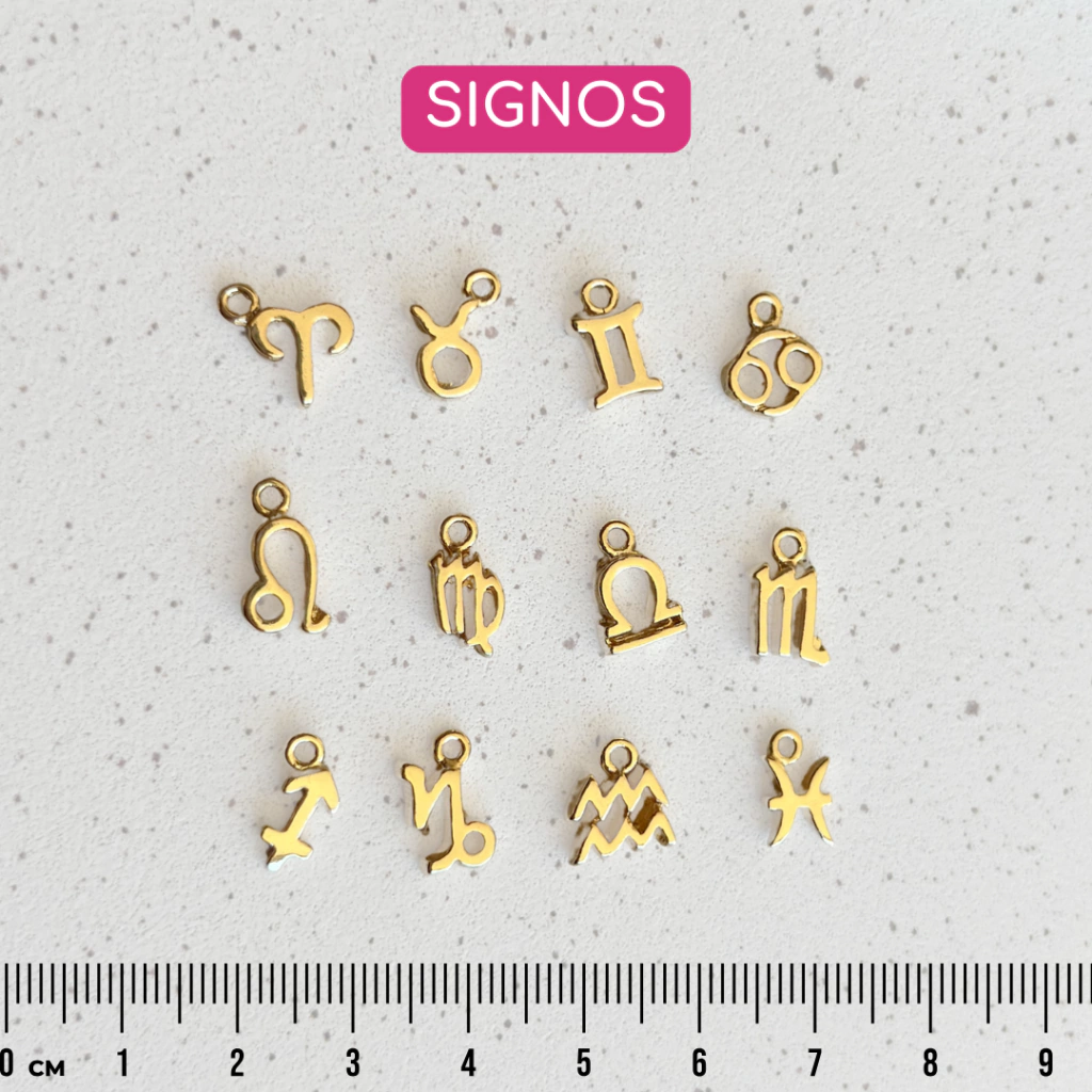 Exemplo: Se você optou por 3 pingentes, escreva: letra A, signo áries e olho grego azul.