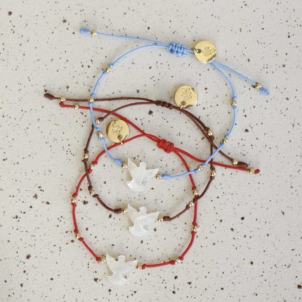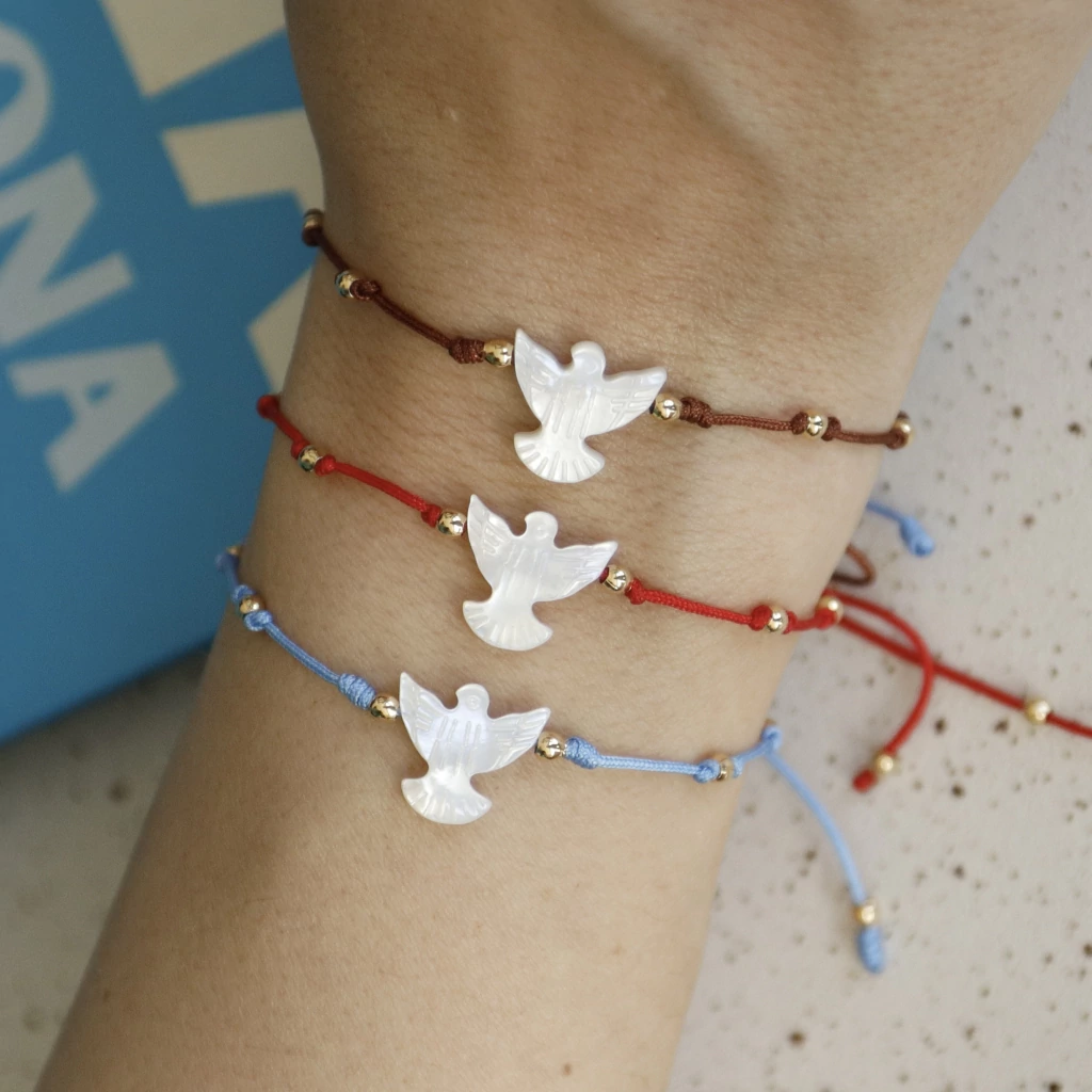 Estamos a-pa-i-xo-na-das pela pulseira com o Espirito Santo em madrepérola!
