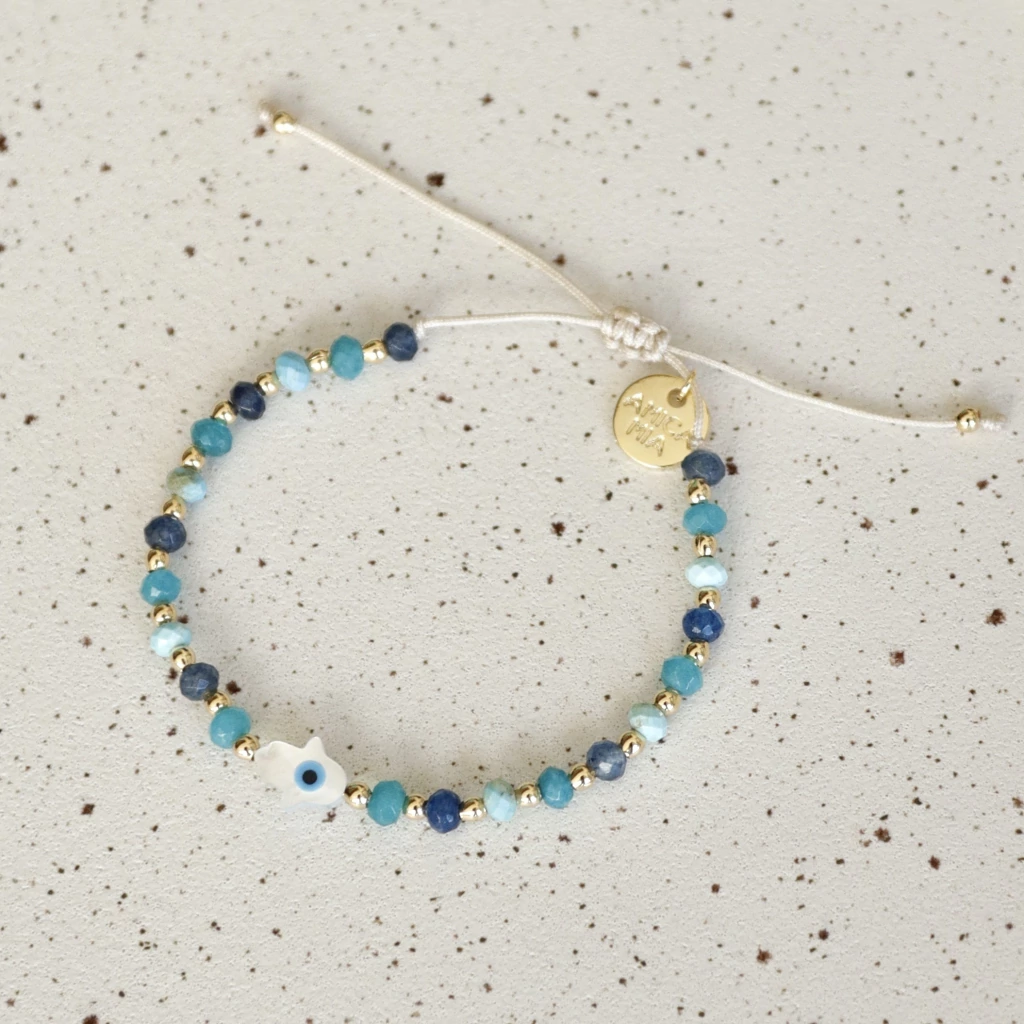 Uma pulseira de proteção super charmosa!! O símbolo da hamsá remete a mão que abençoa e deseja o bem, protegendo contra o mau olhado e energias negativas.