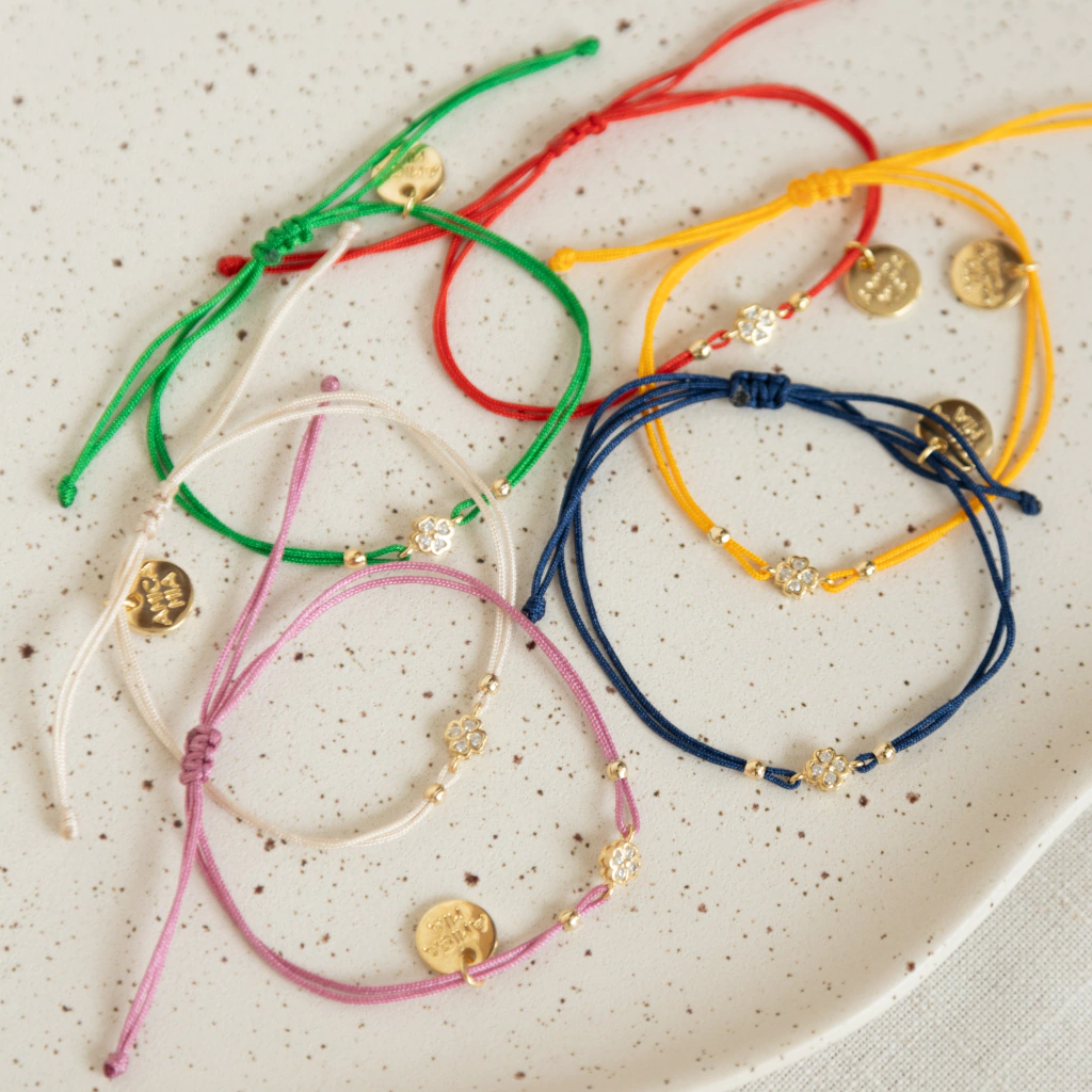 Composta por cordão colorido e pingente banhado a ouro com zircônias cravejadas.