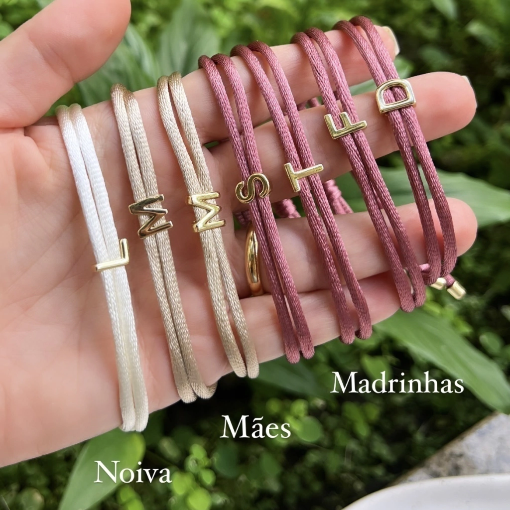 Nas fotos você encontra um pedido lindo que fizemos para a noivinha Leticia. Ela escolheu a pulseira dela em Seda Creme, das mães na cor Champagne e das Madrinhas na cor Rosa Antigo, que é a cor de vestido que elas deverão usar no grande dia.