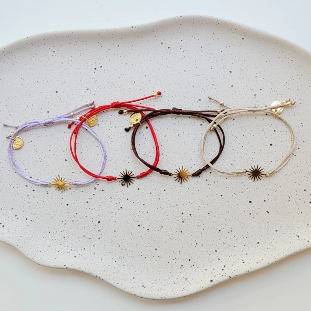 O Sol simboliza luz, vitalidade e conhecimento. Pulseira linda que representa tudo isso em seu pingente com uma pedrinha no meio.