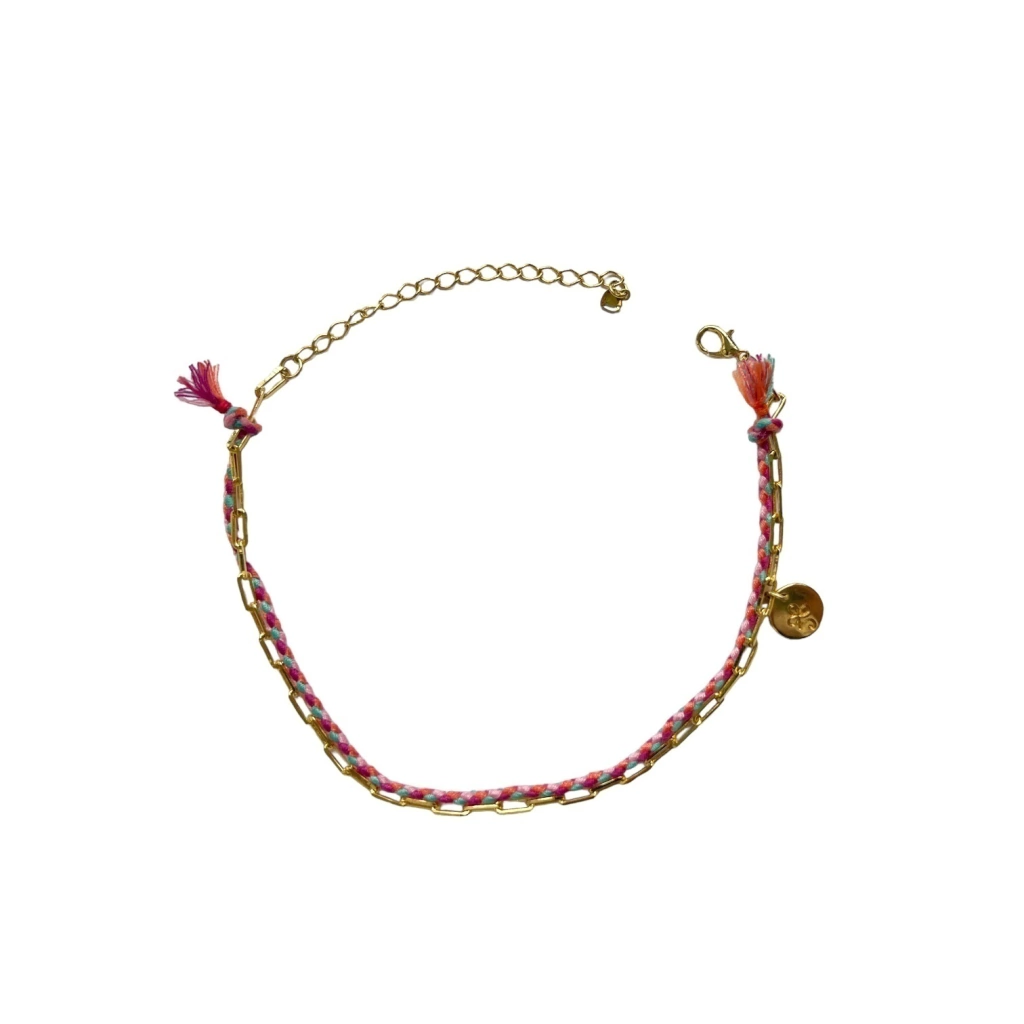 Uma trancinha cheia de detalhes + corrente de elos banhada a ouro.